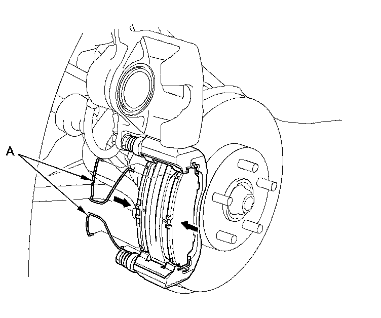 12. Install the pad retainers. Wipe off the excess assembly paste from the retainers. Keep the assembly paste away from the brake disc and the brake pads.