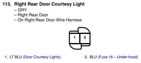 View 113 - Right Rear Door Courtesy Light Connector View