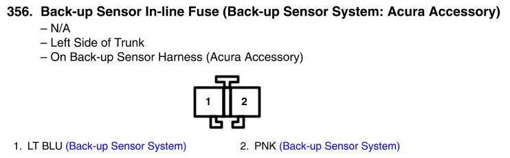 View 356 - Back-up Sensor In-line Fuse Connector View (Back-up Sensor System: Acura Accessory)