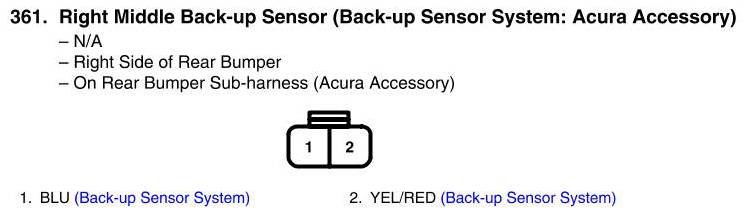 View 361 - Right Middle Back-up Sensor Connector View (Back-up Sensor System: Acura Accessory)