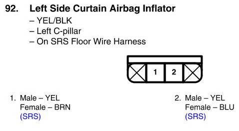 View 92 - Left Side Curtain Airbag Inflator Connector View