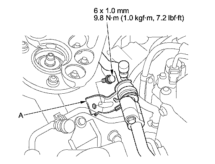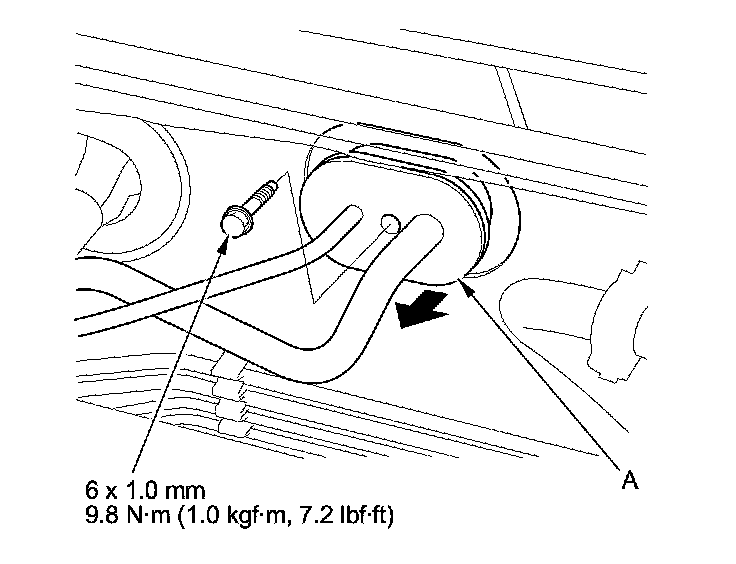 3. Remove the bolt, then disconnect the A/C line (A) from the evaporator core.