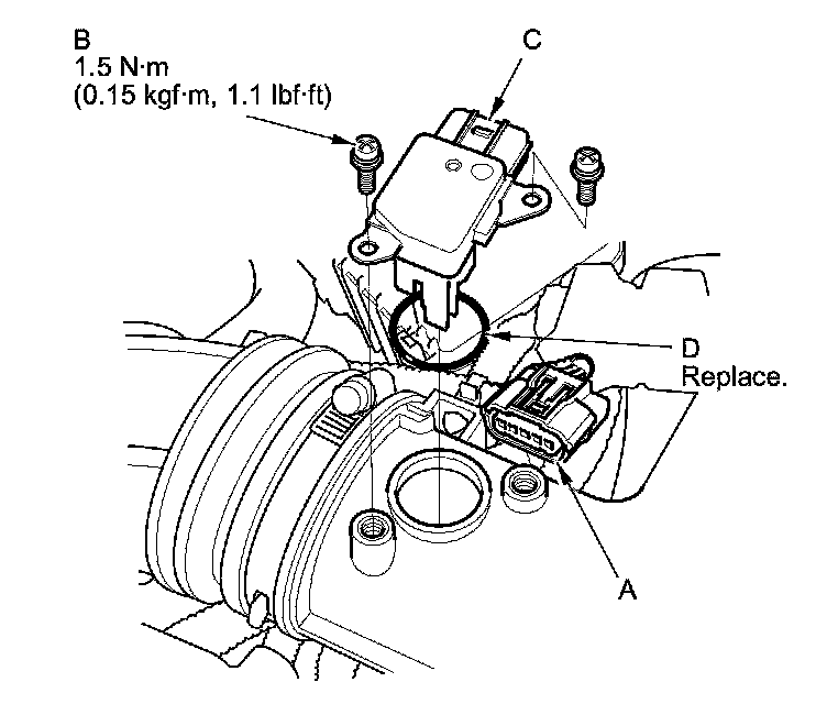4. Install the parts in the reverse order of removal with a new O-ring (D).