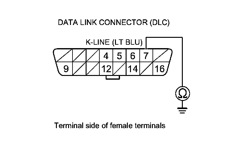 19. Check for continuity between DLC terminal No. 7 and body ground.