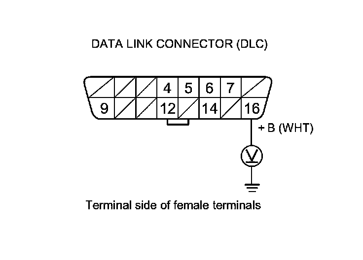 26. Measure the voltage between DLC terminal No. 16 and body ground.