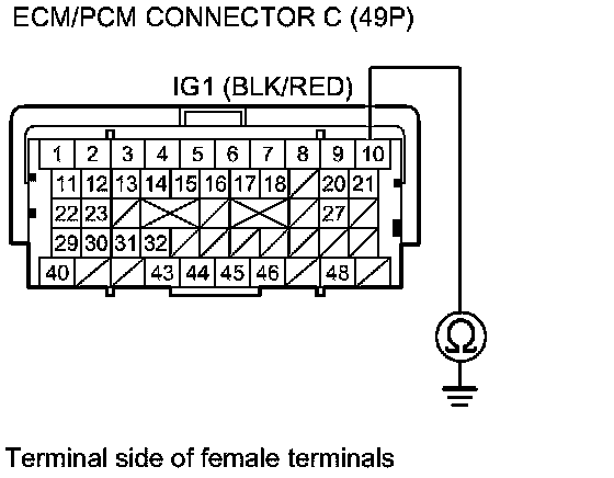 51. Check for continuity between ECM/PCM connector terminal C10 and body ground.