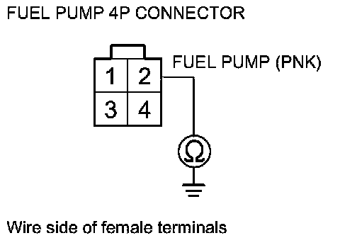 55. Check for continuity between fuel pump 4P connector terminal No. 2 and body ground.