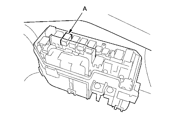 46. Remove PGM-FI main relay 2 (A) from the driver's under-dash fuse/relay box.