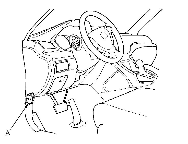 2. Connect the HDS to the data link connector (DLC) (A) located under the driver's side of the dashboard.