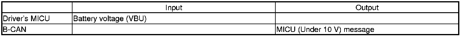 The driver's MICU monitors the power supply voltage (back-up voltage). If the voltage goes below 10 V, the driver's MICU will not store a DTC.