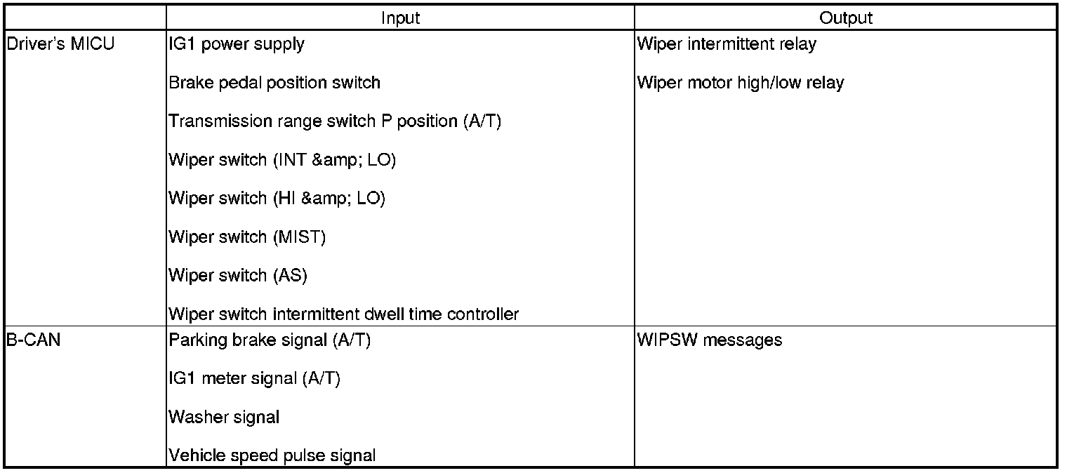 The driver's MICU control of the wiper is based on inputs from each switch.