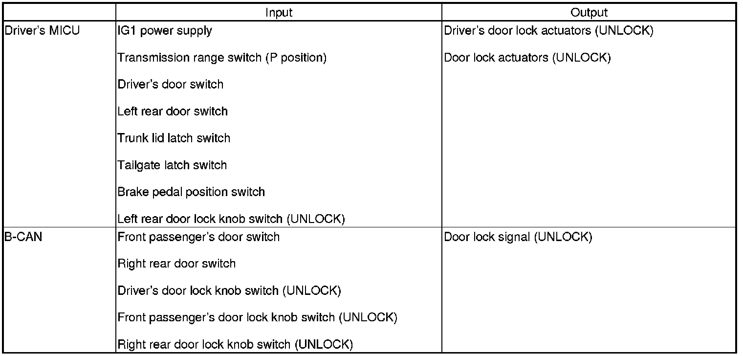 Auto Power Door Locks (UNLOCK Operation)