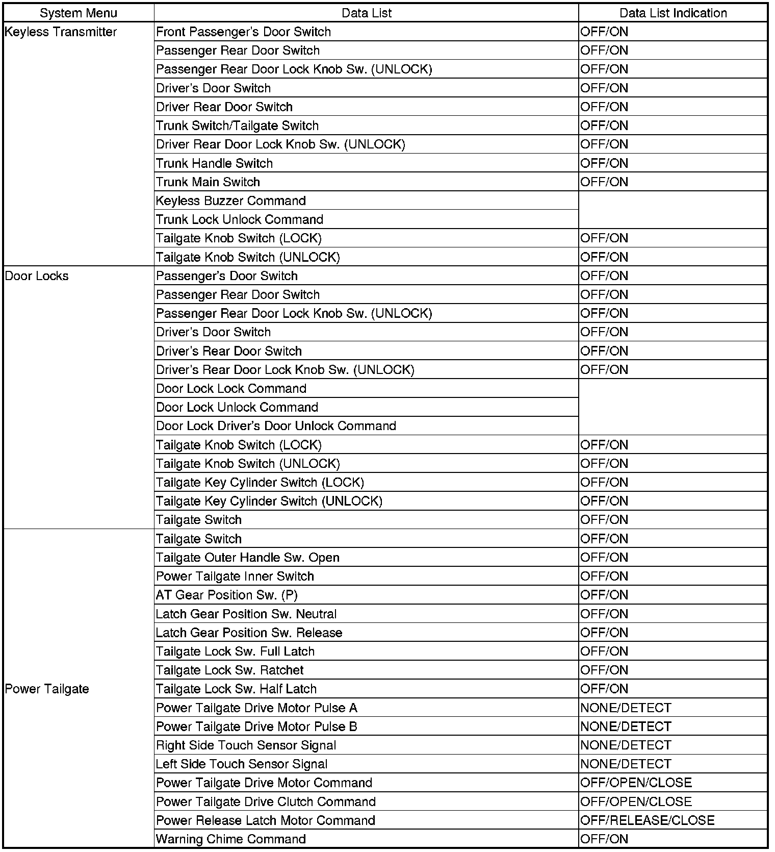 Power Door Locks (UNLOCK)