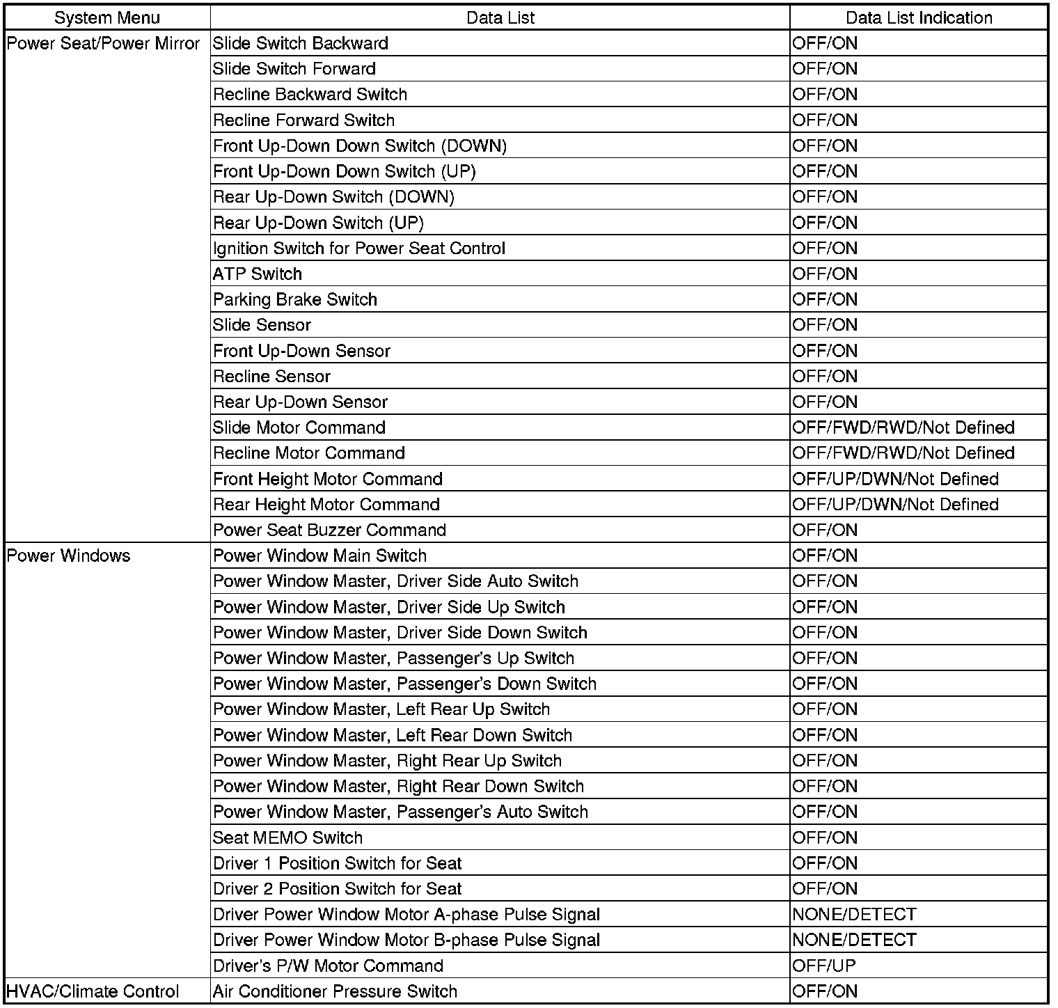Certain inputs happen so quickly that the Data List on the HDS cannot update fast enough. Hold the switch that is being tested while monitoring the Data List. This should give the HDS time to update the signal on the Data List.