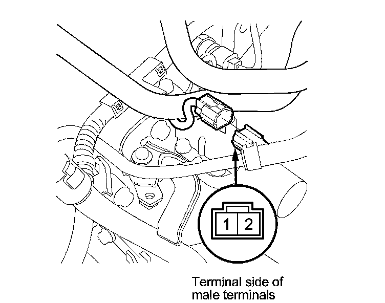 13. Connect a jumper wire from the negative battery terminal to A/T clutch pressure control solenoid valve A connector terminal No. 2, and connect another jumper wire from the positive battery terminal to A/T clutch pressure control solenoid valve A connector terminal No. 1. Make sure A/T clutch pressure control solenoid valve A moves.