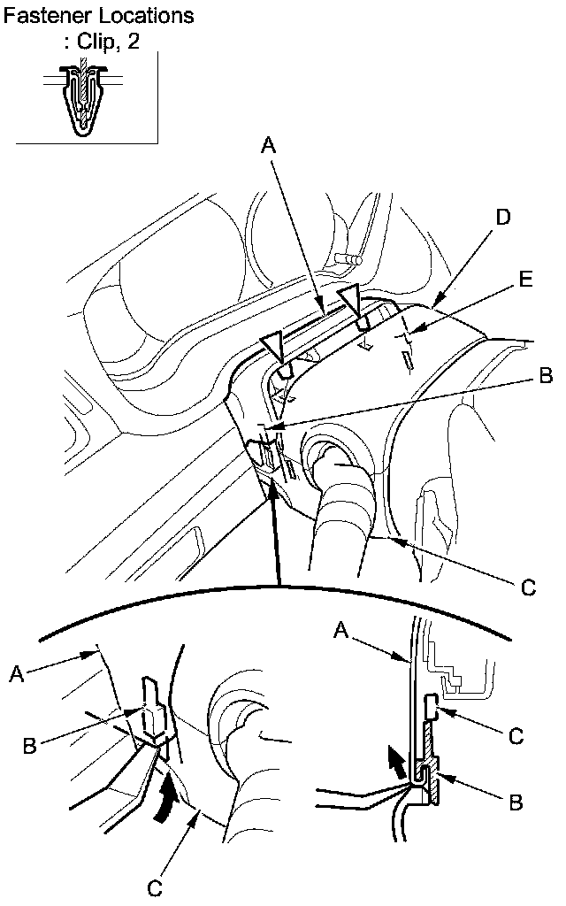 2. Detach the clips fastening the column blind cover from the upper column cover (D) by hand.
