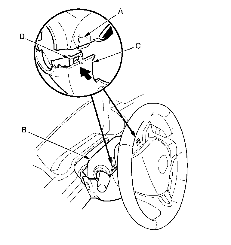 Carefully release the tabs, and do not pull up too hard on the upper column cover, or the hooks (D) may break.