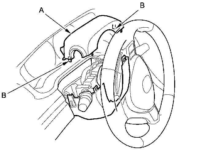 5. Remove the upper column cover (A) by lightly pulling it up to release both side hooks (B) of the cover.