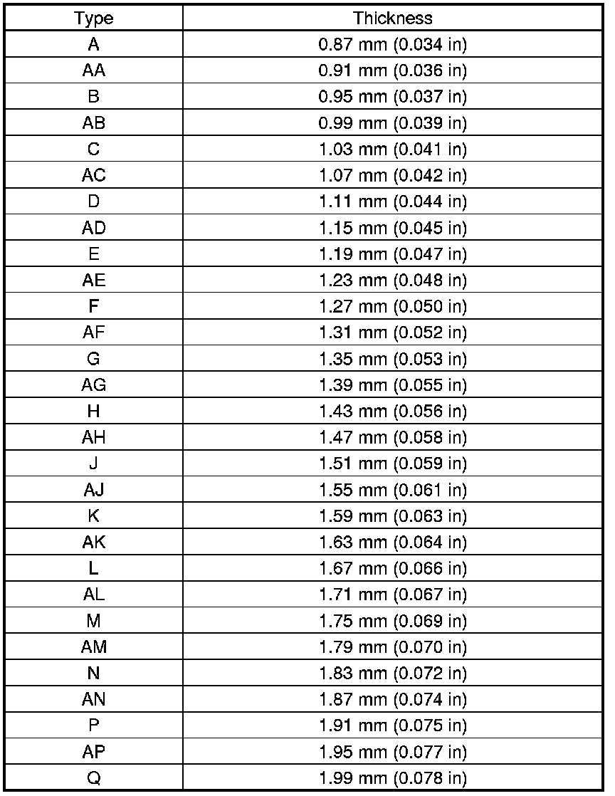 16. If the measured clearance in step 15 is not within the standard, select another suitable 35 mm shim from the table, then go to next step to replace the 35 mm shim and the ball bearing with new ones. If the measured clearance in step 15 is within the standard, go to the next step to replace only the ball bearing with a new one.