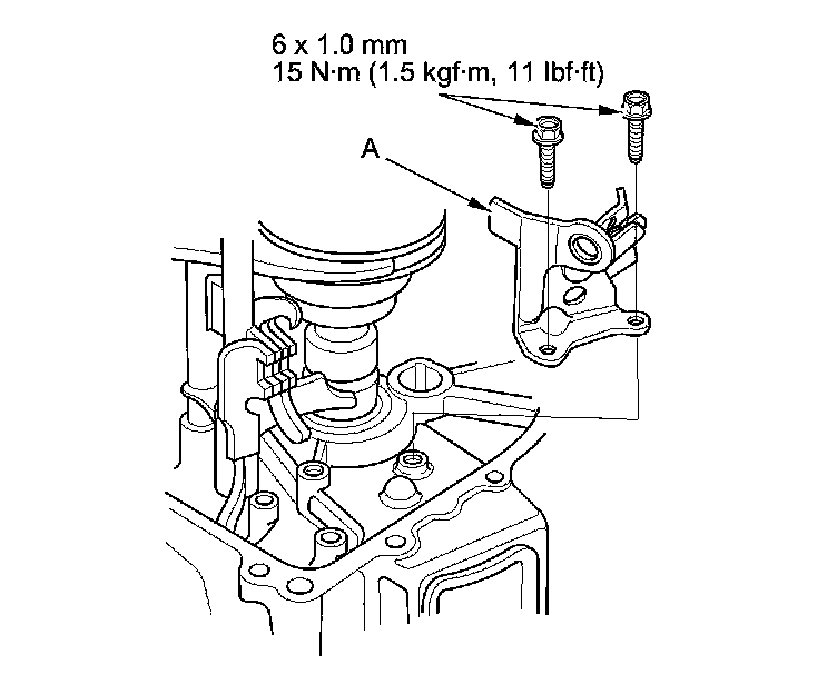 4. Install the reverse shift fork (A).