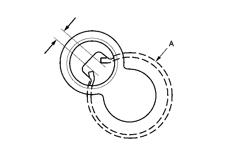 13. Make sure the 72 mm snap ring (A) is securely seated in the groove of the countershaft bearing.