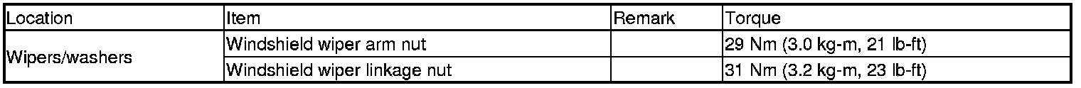 Wiper and Washer Systems: Specifications
