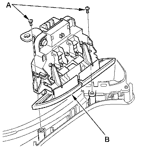 2. Remove the cover (A) and screws from the steering wheel (B).