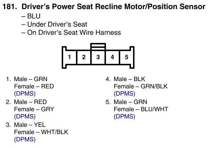 Driver's Power Seat Recline Motor/Position Sensor Connector View