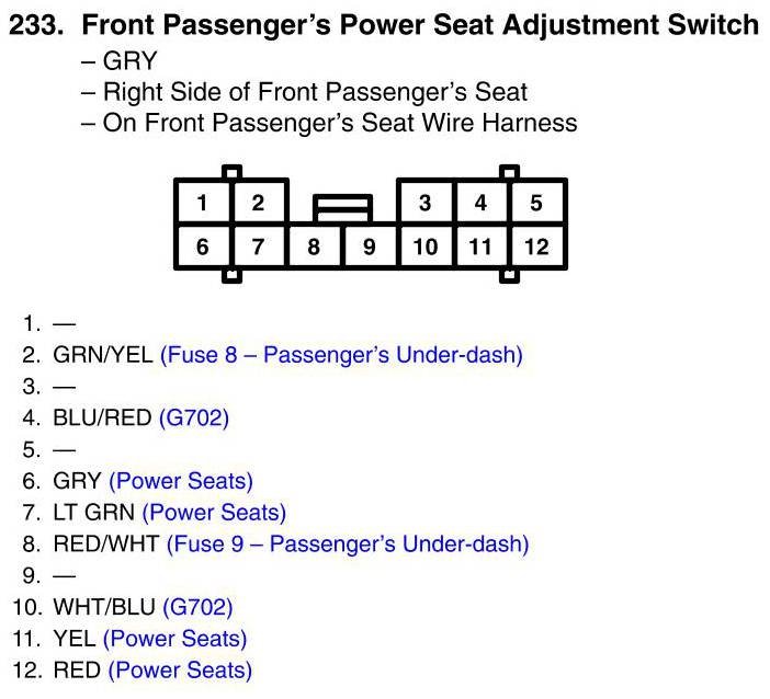Front Passenger's Power Seat Adjustment Switch Connector View