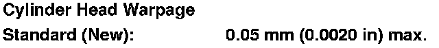 - If warpage is less than 0.05 mm (0.0020 in), cylinder head resurfacing is not required.