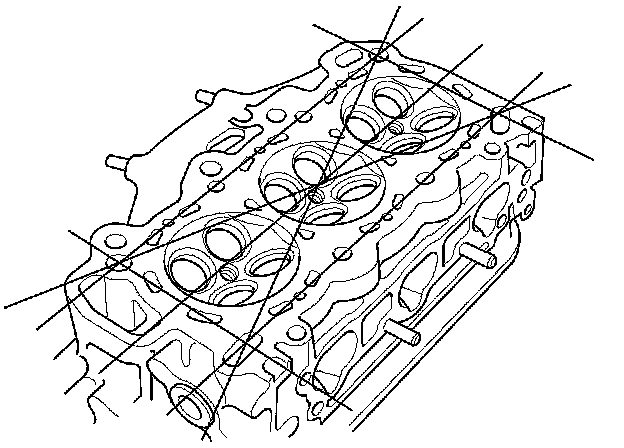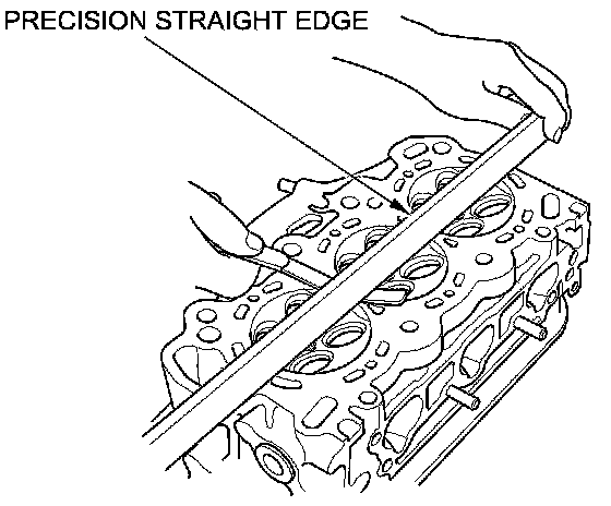 3. Check the cylinder head for warpage. Measure along the edges, and three ways across the center:
