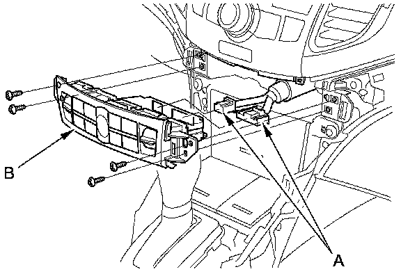 4. Remove the self-tapping screws. Disconnect the connectors (A), then remove the climate control unit (B).