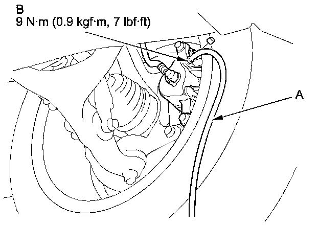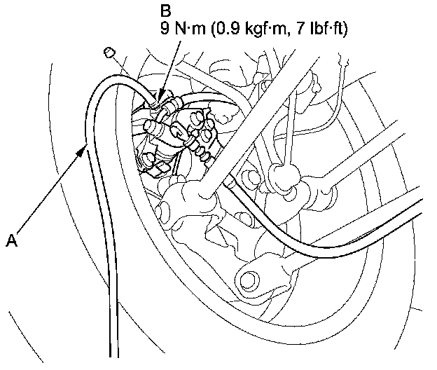 4. Attach a length of clear drain tube (A) to the bleed screw (B), then loosen the bleed screw to allow air to escape from the system. Then tighten the bleed screw securely.