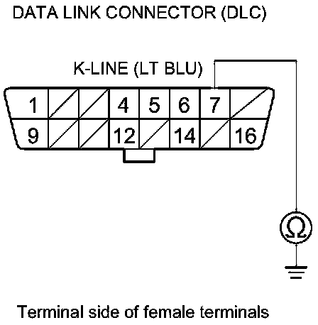 19. Check for continuity between DLC terminal No. 7 and body ground.