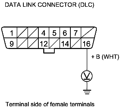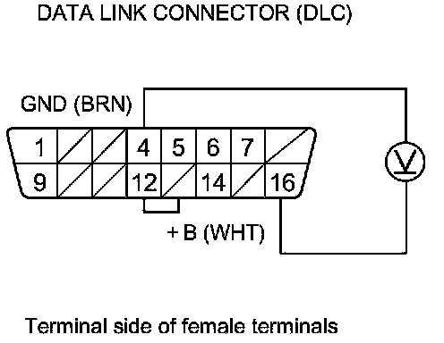 26. Measure the voltage between DLC terminal No. 16 and body ground.