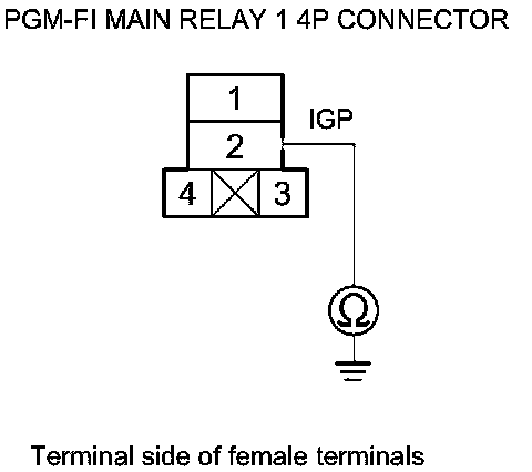 41. While disconnecting each of the parts or connectors below, one at a time, check for continuity between PGM-FI main relay 1 4P connector terminal No. 2 and body ground: