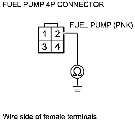 55. Check for continuity between fuel pump 4P connector terminal No. 2 and body ground.