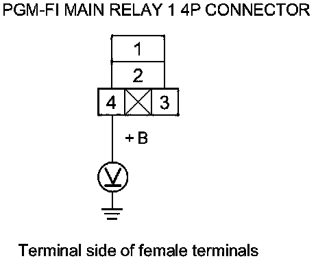 67. Measure the voltage between PGM-FI main relay 1 4P connector terminal No. 1 and body ground.