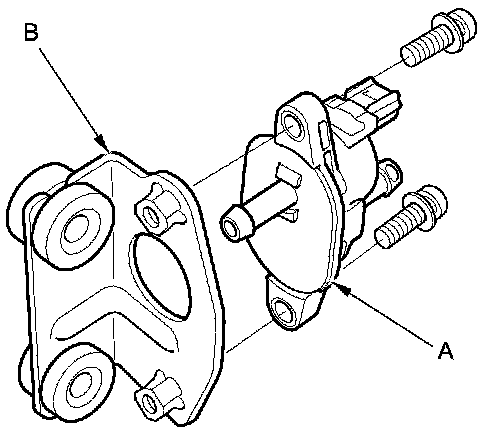 3. Remove the EVAP canister purge valve (A) from the bracket (B).