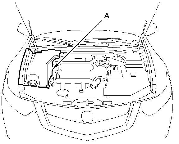 2. Remove the right engine compartment cover (A) Service and Repair.