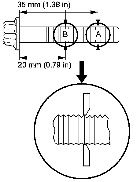 Install a new bolt if the difference in diameter is out of tolerance.