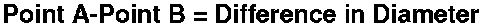 Calculate the difference in diameter between point A and point B.