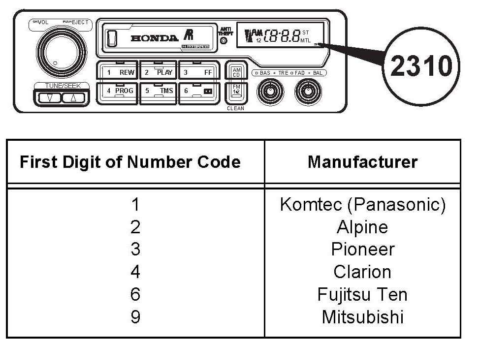 ^ If the unit has no number code on its face, check the label on the unit housing, and compare the first two or three letters of the radio reference number (or audio unit model number) to this list: