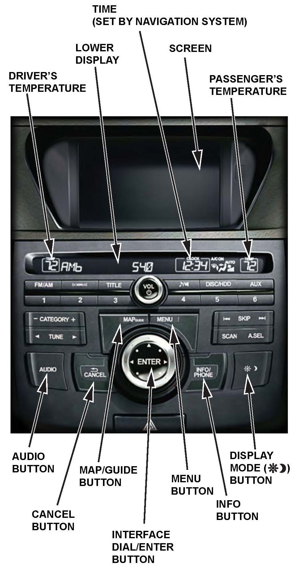 It works with the vehicle's navigation system, the HandsFreeLink system, and the audio system.