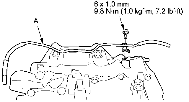 4. Install the vacuum line (A) with the bolt.