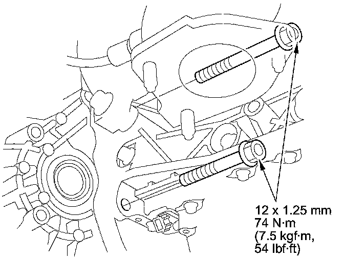 12. Install the upper transmission housing mounting bolts.