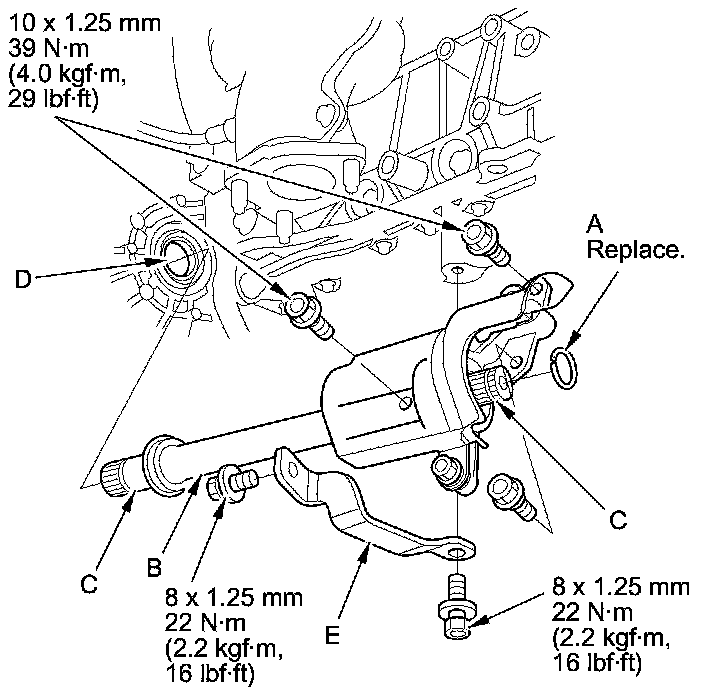 NOTE: Insert the intermediate shaft carefully to prevent damaging the oil seal (D).