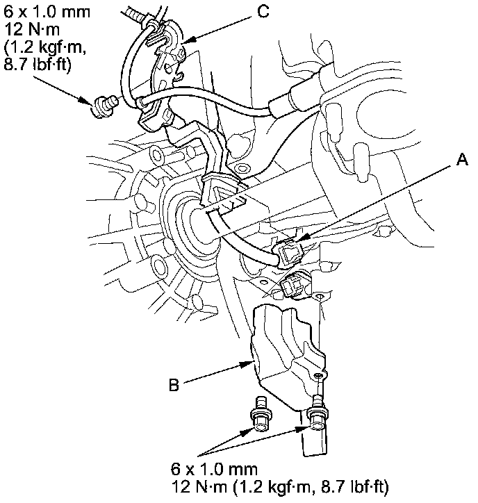 - Input shaft (mainshaft) speed sensor connector (B)