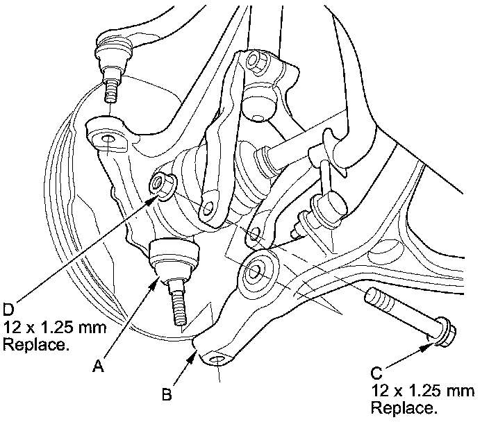 41. Wipe off any grease contamination from the ball joint tapered section and threads. Reconnect the tie-rod end ball joint (C) to the knuckle. Install the nut (D), and tighten it to the specified torque.