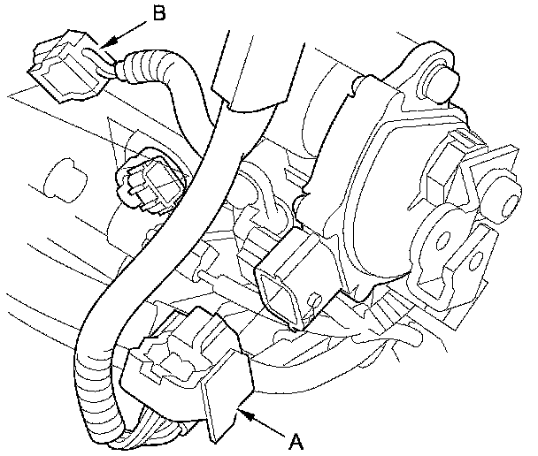 - Transmission fluid pressure switch B (3rd clutch) connector (A)